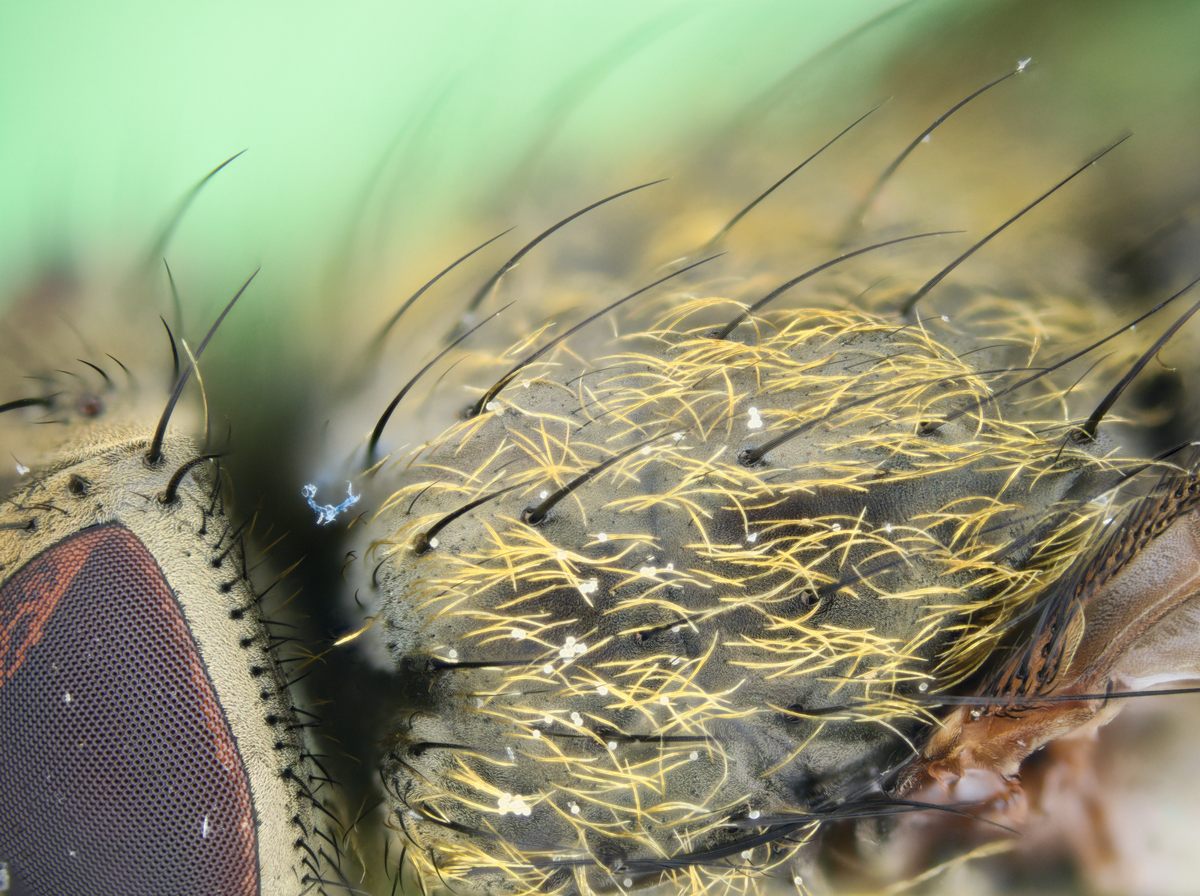 Thanks for the excellent images! Perhaps they are too good for me: the more I look at the humeral bristles on the 3 photos the less I'm sure. I'll try another approach: Do you agree, that the mid tibia shows 2 ad bristles? (left_mid_tibia.jpg) Palps are black? (pg_face.jpg) - excludes P. viatica Femur 3 shows no yellow hairs? (left_hind_femur.jpg) - excludes P. angustigena If so, it's probably P. rudis. I used the key in Olga Sivell (2021): Blow flies Greetings, Eric K |