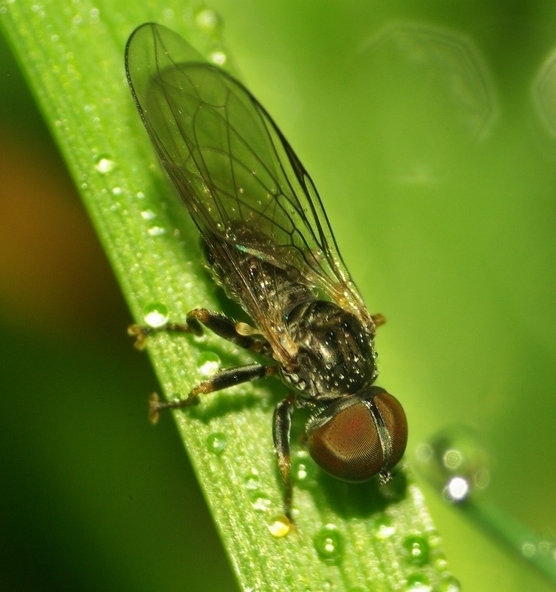 Oh, I have just a little experience with these great flies and I feel that I would like to discuss them a bit. I am right that this is somewhere in subfam. Pipunculinae (No ocellar bristles, occiput with straight margins and broad) and tribe Eudorylini (propleuron without fan of setae (right?), tergites dusted, pterostigm present and crossvein r-m in basal part of cell M). Am I right that far? |