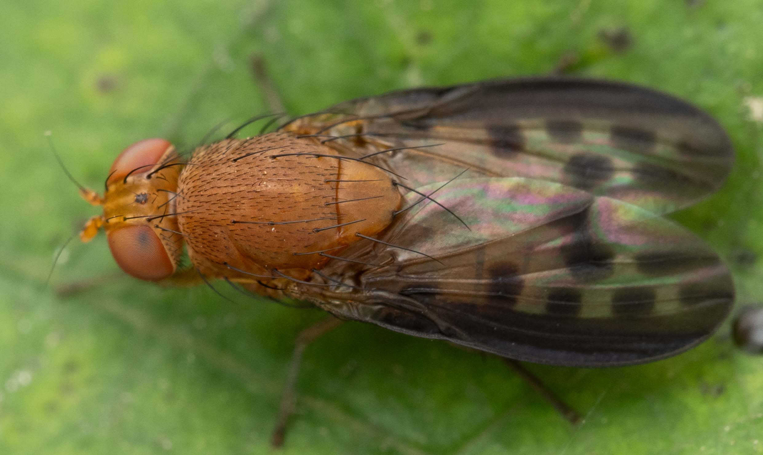 In the Minettia genus group (postsutural intraalar present) but not Minettia. Maybe Poecilominettla. A few species have marked wings. |