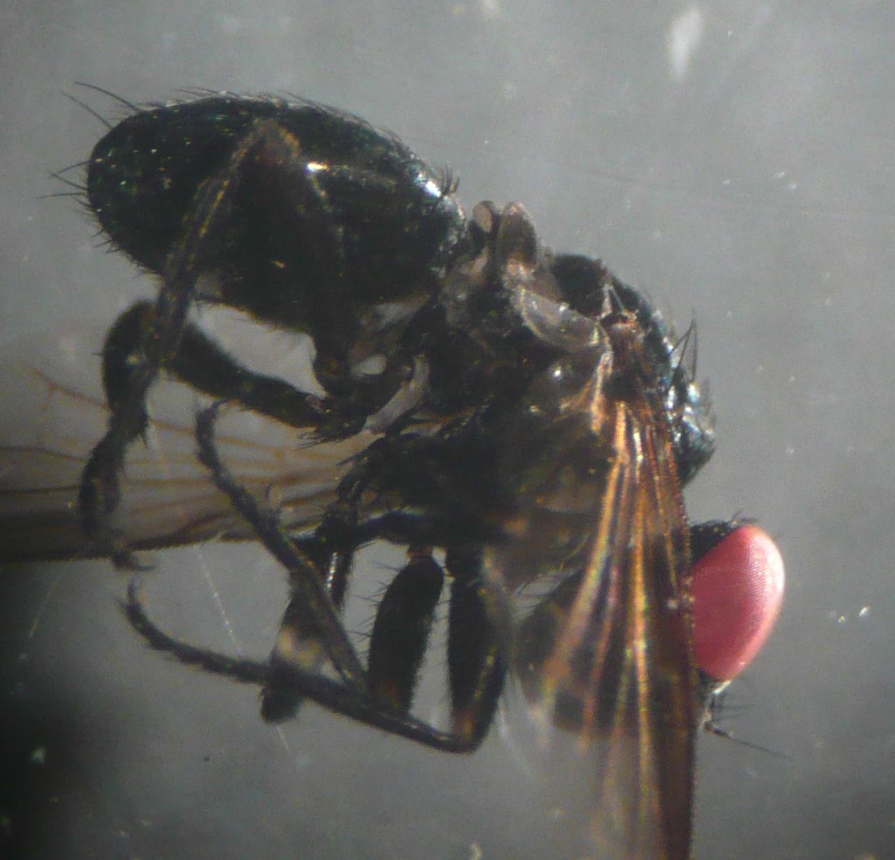 Yes, that is a classical mistake. It is Catharosia (Tachinidae), which has a reduced postscutellum....... I guess it is C. pygmaea, check the colouration of both calyptrae Theo |