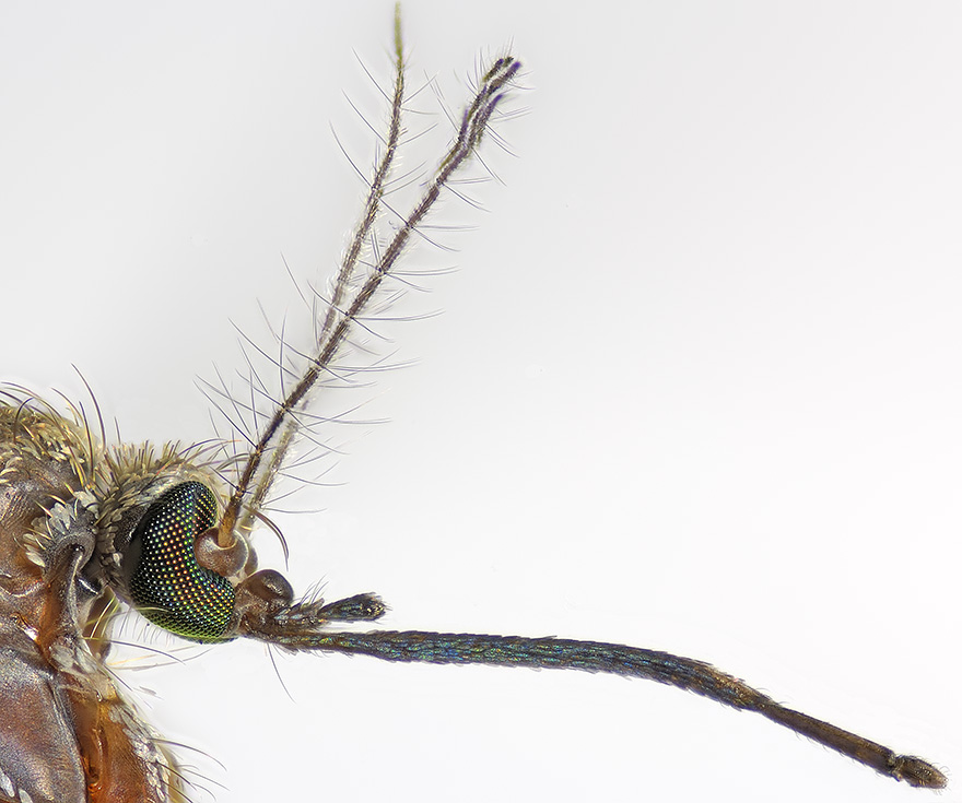 conopid wrote: What kind of magnification do you think you are achieving in the full size file ? Hi Nigel: Didn't record the mag. in this instance, and I don't have the mosquito. I have a Nikon PB-6 bellows. The literature that came with the AF 28mm f2.8D Nikkor lens gives a mag. range of 3.2-7.6 when reversed on the PB-6, and a field size getting down to 3.2x4.7mm.I believe these data are based on the full-sized sensor in regular SLR's; possibly need to increase the mag. range by 1.5 to acount for the smaller sensors in most DSLR's. A wider angle lens, e.g., 24mm will give even greater mag.; a longer lens, e.g., 50mm will give less mag. Also, using the 28mm in the normal position on the PB-6 will give mag. from 1.7-4 (again I guess with a full-sized sensor). At these mags. depth of field is almost non-existant; had to use many images and stack them with Helicon Focus. |