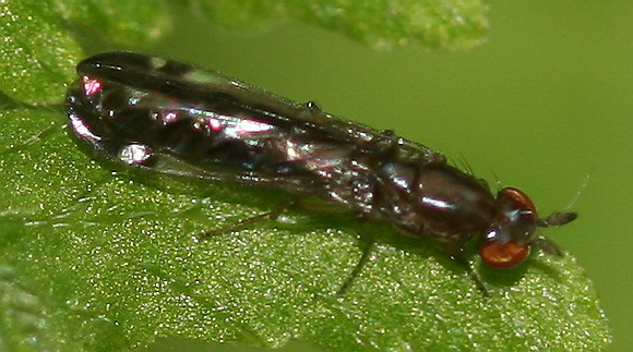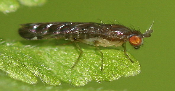 I can't read anything of the text on the following webpage (http://furumusi.a...=4456#4456) but the specimen on that page looks similar to yours. I think the family Teratomyzidae (fernflies) is suggested there. This family belongs to the superfamily Opomyzoidea.