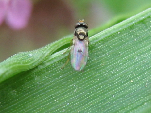 Location: Hungary Habitat: garden Size: Small, few mm Date: 2008-04-30 Unfortunately I could take only two obscure pictures from this small fly but I am curious to know which family does this fly belong? -or maybe a genus level