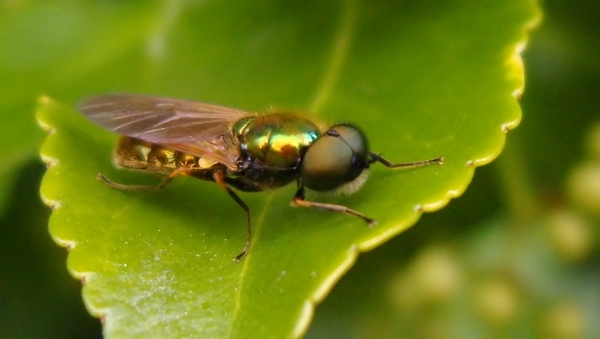 metallic fly with big eyes, syrphidae?