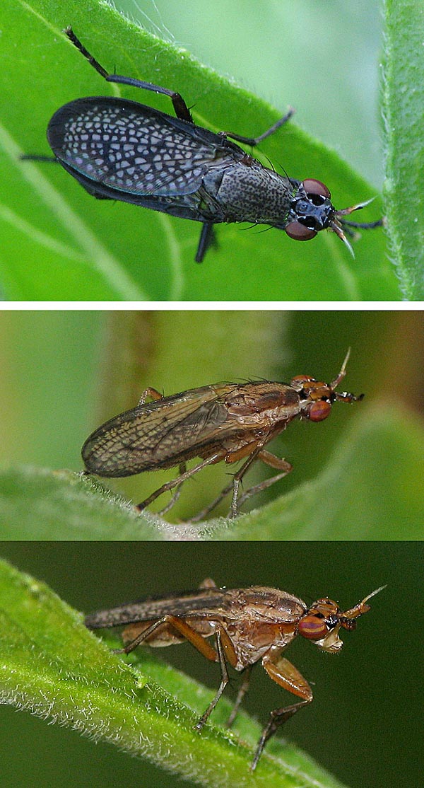 Hello, Yesterday evening I saw two representatives of Sciomyzidae in my garden. The upper one is, I think, Coremacera marginata, but the lower one is unknown to me - please help! Many thanks, Sundew Sundew attached the following image: ![]() [158.95Kb] |