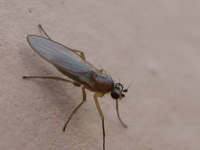 Hello! I had encountered with this on house wall in Hungary. Few mm long slender bodied fly. I can't recognize even the family. 1st of August 2008 eguzki attached the following image: ![]() [56.08Kb] Edited by eguzki on 09-08-2008 11:03 Greetings, Tomi |
