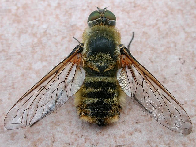 Villa, virtually impossible to identify from pictures, let alone with the actual specimen. Sometimes you can be lucky with these bombyliids, but as a rule it remains Villa sp.