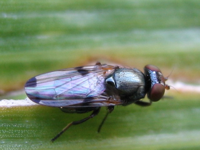 One possibility is Euxesta pechumani of Ulidiidae.