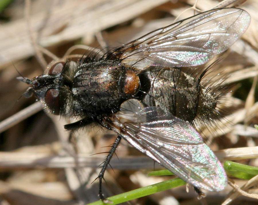 Well, Ernestia puparum is a rare species here so I haven't much experience of it myself. I agree the colouration is different and the wing markings aren't so bold but the size, shape and those very hairy eyes shout "ERNESTIA!!!" to me ![]() |