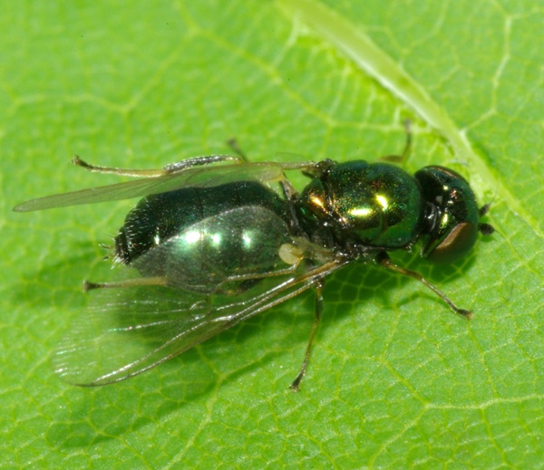Hi, I first thought it was a Chloromyia formosa female, but head is with very few and little hairs, and wing is very transparent. Some 7 mms.