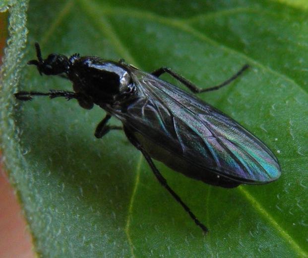 Dilophus, maybe febrilis, but I thought there was another one in the Iberian that had darkened wings in the female.