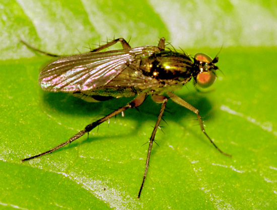 So ... let's if I got the lesson right ![]() - small (6-7mm) shiny metallic fly - long legs - bristly - only one obvious cross-vein (this comes from the book) it's a Dolichopodidae, right? ![]() 2003/05/01 - Portugal center countryside - crop field digitalg attached the following image: ![]() [116.33Kb] Armando Frazão http://bugs.digit... |