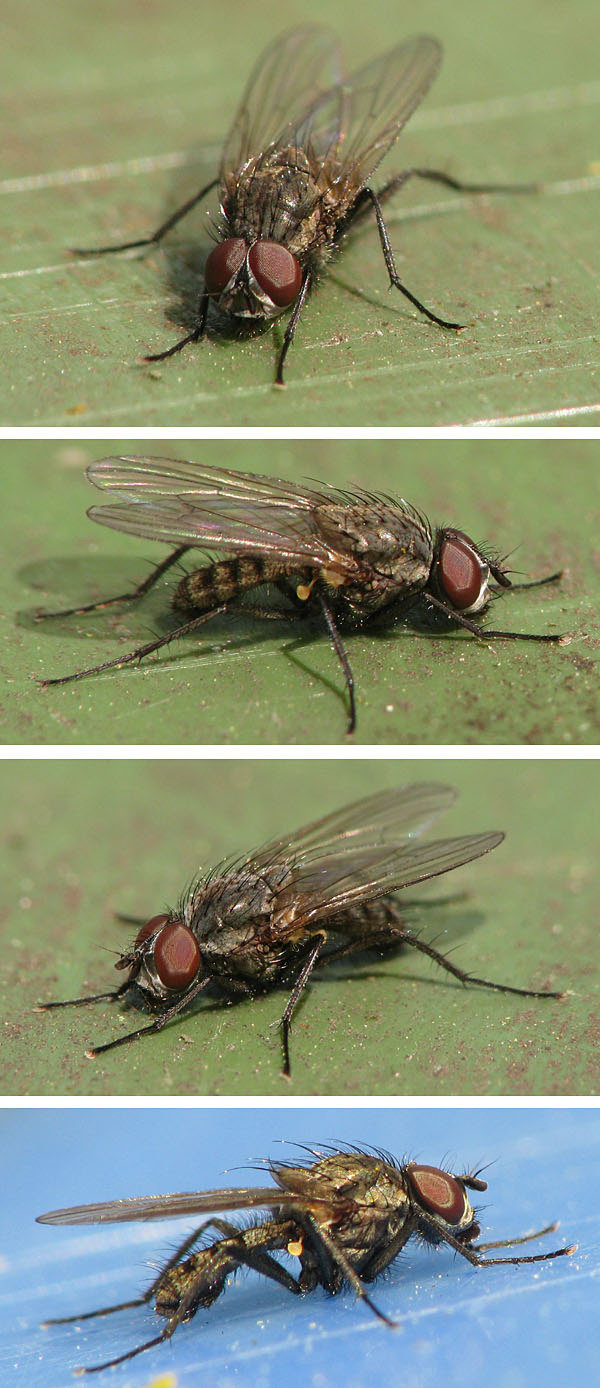 Hi, These days lots of Anthomyiids are taking a sunbath on our dustbins. They seem to belong to the same species. I show you some of them - perhaps a genus name can be given. (I thought of Delia.) Many thanks, Sundew Sundew attached the following image: ![]() [162.39Kb] |