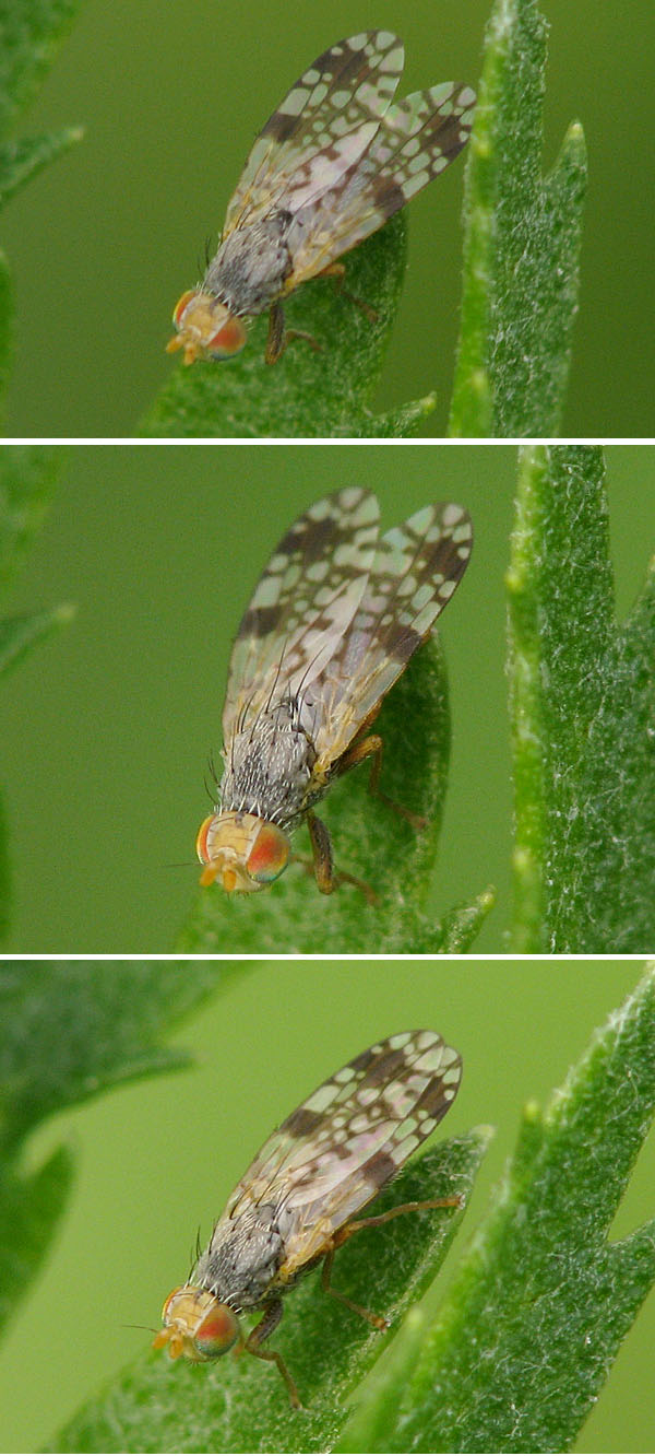 Hi, This afternoon I met this small Tephritid. The only species of my collection that bears a certain similarity as to wing pattern is Tephritis nigricauda, but I just want to make sure if I'm halfway right... Many thanks, Sundew Sundew attached the following image: ![]() [149.45Kb] |