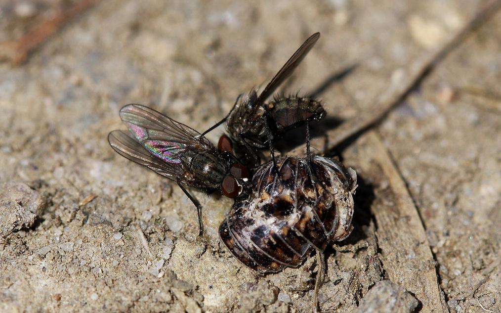 photo taken: East Bohemia, CZ, 25th of April. These flies were numerous on the forest way, where often sucking on the dead arthropods, for instance the pill millipedes Glomeris conspersa (second photo). Thank for ID! Petr Michael Petr Michael attached the following image: ![]() [105.94Kb] |