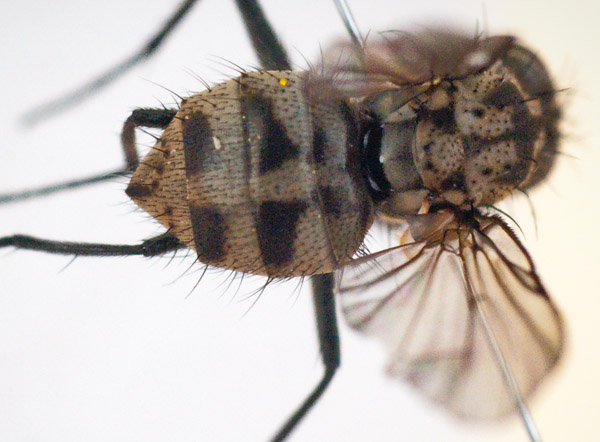 Thank you Stephane. I was diverted from maculosa by the remarks in couplet 4 of the Limnophora females key on p66 of Gregor et al. - the frontal triangle reached the front of the frons and the pre-acrostichals were in 3 rows. But now I see that that's OK in the description of maculosa (though not in the key!), and the dorsal pattern is right. Close, but no cigar ![]() Stephen. |
