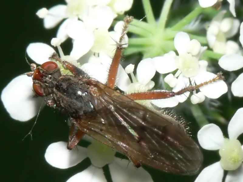 Hello! At first I thought of Scatophagidae because of the spiny legs, but it was only 4.5-5 mm big. Maybe Heleomyzidae? Or even Sciomyzidae? From a shadowy path in the forest (northwest Germany). Sorry, only overflashed photos... Juergen Peters attached the following image: ![]() [44.3Kb] Edited by Juergen Peters on 06-06-2010 21:50 Best regards, Jürgen -=-=-=-=-=-=-=-=-=-=-=-=-=-=-=-= Juergen Peters Borgholzhausen, Germany WWW: http://insektenfo... -=-=-=-=-=-=-=-=-=-=-=-=-=-=-=-= |