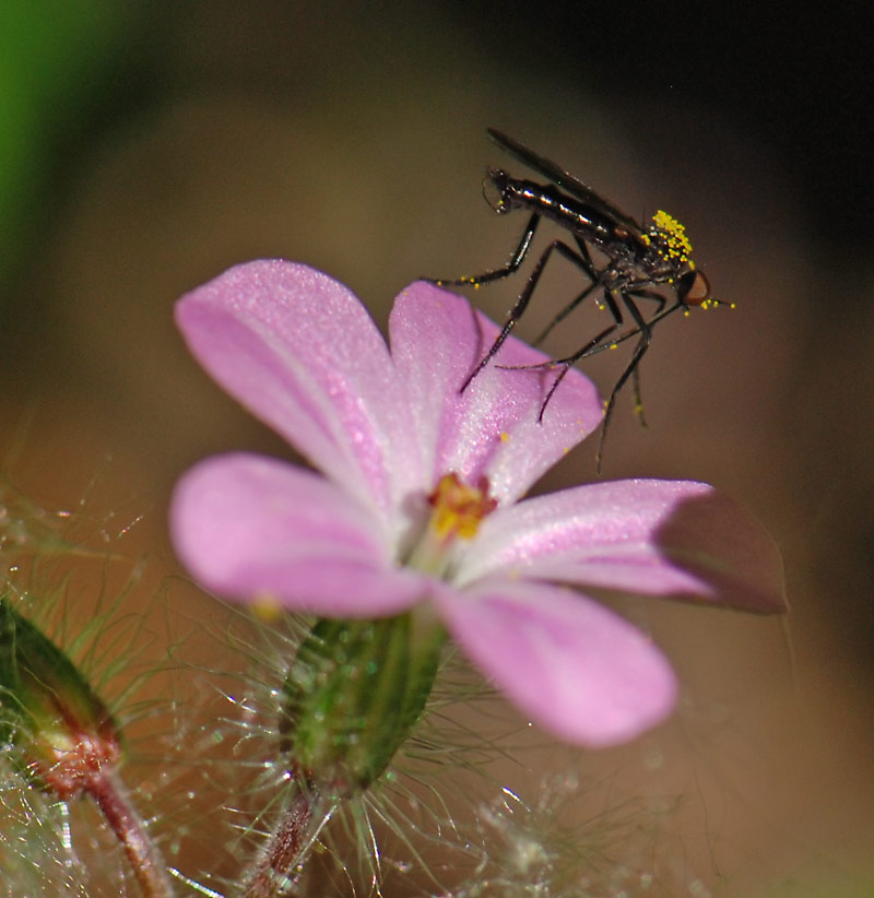 Dark Empis male on Geranium - might be E. pennipes, they love cranesbills! Cp. http://www.dipter...ost_134805.