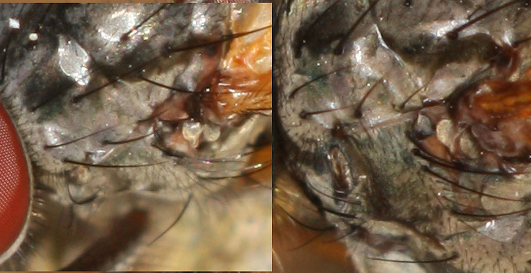 it could be the male of Phaonia villana. Notopleuron ?