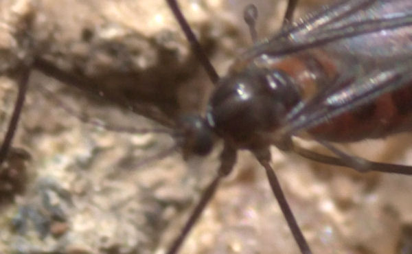 Hi guys, Does anyone have any ideas on this one. It is about the size of a small mosquito, appears to have long segmented antennae and the haltere seem long and protruding unlike anything I have seen before. Sorry about the shot quality, it was constantly hunting around on the ground waving its front legs around. Possibly in Bibionidae? Taken in the hinterland of the Widebay area of Queensland. Any thoughts or an ID much appreciated Trev attached the following image: ![]() [127.51Kb] Edited by Trev on 17-06-2010 00:49 |