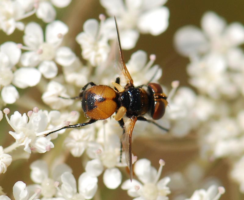 It's hard to gauge scale ... and the distinction between Cistogaster and Gymnosoma is the length of the antennae (which we can't see in this photo). But I'd guess that it is most likely to be Cistogaster globosa (male) but it might be Gymnosoma nitens as an outside bet ![]() Do you have any photos showing the antennae? Edited by ChrisR on 12-07-2010 09:42 Manager of the UK Species Inventory in the Angela Marmont Centre for UK Biodiversity at the Natural History Museum, London. |