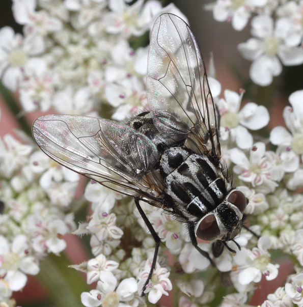 Hello everyone - can anyone help me identify this striking fly I photographed today on umbellifers here in Wolverhampton, UK?
