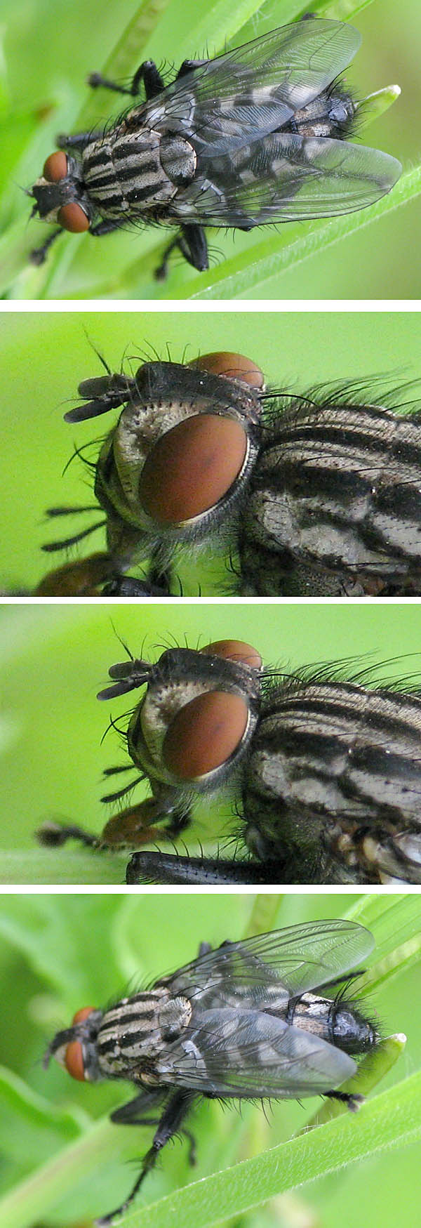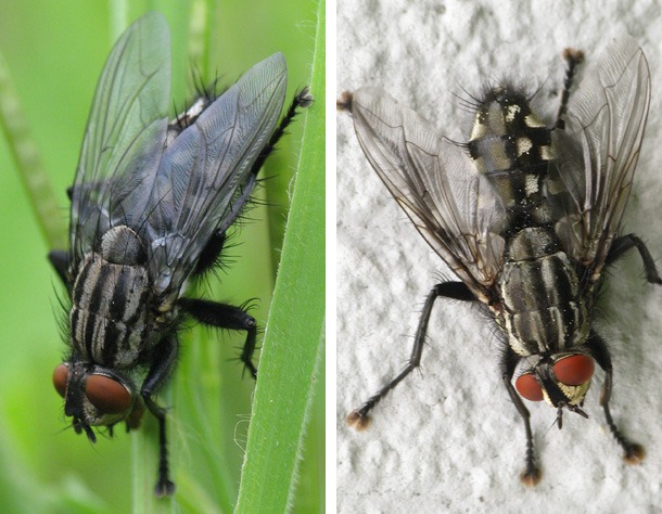 Thanks for the correction! Checking my Sarcophaga collection, this (very big) fly had an outstanding colour, and I do not think it was a matter of bad light only (see pic below: the right one has the "typical" Sarcophaga colouration). However, the photos are two years old, so I do not remember the circumstances. So if I find a strange Sarcophaga in the future, I shall try first to get a good shot of the arista. Only a bare arista is interesting, and then the colour of the palps is the next character to check. Hairy dark palps seem to be frequent in Sarcophagidae. So much to learn, if one does not want to prepare genitalia... Sundew attached the following image: ![]() [138.67Kb] |