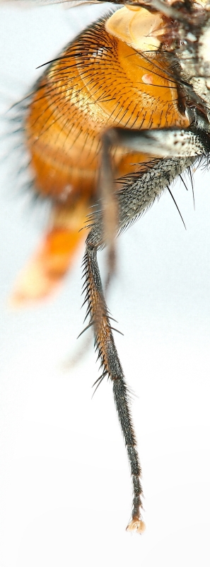 Or am I being fooled? Yesterday 28. vii 2010 I caught this beauty on the outside of my kitchen window in Copenhagen. At a first glance I thought Tachina fera-ish, then working my way through the key I thought Smidtia conspersa... and then I started to get excited. The specimen is rather worn and lacks most of its bristles and hairs on the right side of the head but otherwise it is in mint condition. There are, however, two things that worries me a bit. The ad comb on t3 has a long bristle in the middle about twice the length of the short ones. According to the key Winthemia sp. shouldn't have this or at least it should be much shorter. How much is much? Is the fly in fact Timavia amoena? If W. bohemani is correct this species should have yellow tibiae. The specimen has yellow tibiae but they are very murky. Please have a look (Chris, Jaakko, Theo). Should I celebrate a lot or just a bit? Regards, Walther Gritsch attached the following image: ![]() [172.27Kb] Walther |
