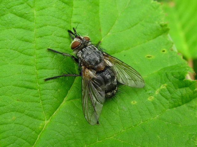 Looks like a Linnaemya sp. again (densely hairy eyes, pale basicosta - and it will have a projecting mouth edge) ... but one of the dark-legged species that cannot be identified without specimens. The key depends on several features that can't be photographed on living specimens, such as the bristles on the back of the head, colour of hairs on sternite-1 and other fiddly bits ![]() Was it quite large - like >10mm? Edited by ChrisR on 29-07-2010 19:24 Manager of the UK Species Inventory in the Angela Marmont Centre for UK Biodiversity at the Natural History Museum, London. |