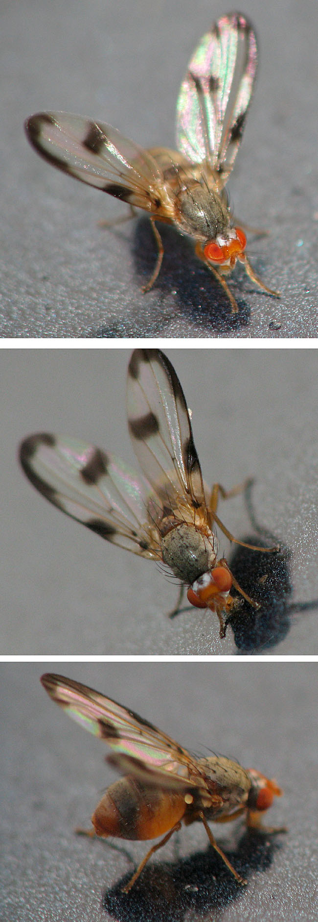 Hi, A year ago I saw this Pallopterid on the Thuringian/Bavarian border. A similar fly caused an interesting discussion (http://www.dipter...;pid=89819) ending up in Toxoneura venusta. However, if I compare it with the gallery pic of Palloptera usta (http://www.dipter...oto_id=889) it is hard to see a difference. So how shall I label my fly? Many thanks, Sundew Sundew attached the following image: ![]() [193.54Kb] Edited by Sundew on 01-08-2010 20:51 |