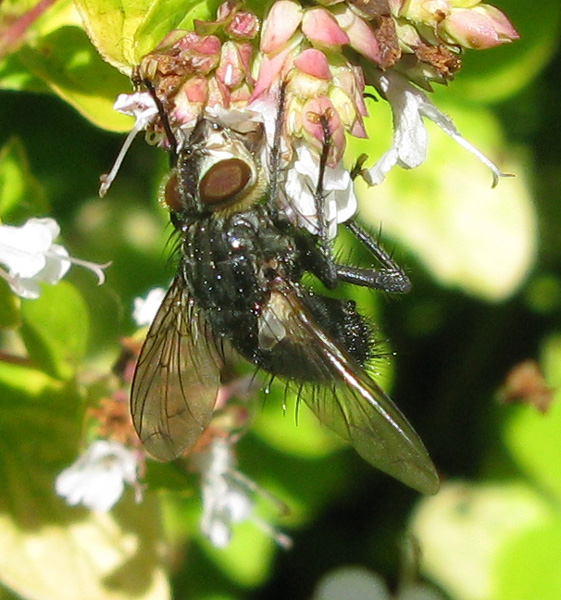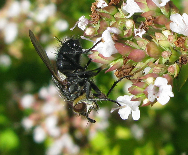 Can anyone point me in the right direction with this one please, I've tried using an ID key but got lost and ended up just comparing photos from the gallery. I wonder if it is Calliphoridae (I'm sure the golden coloured 'collar' in the first photo may be a clue to those in the know, the nearest I found was Calliphora vomitoria but I don't think it is that. So, any help gratefully received. SE Kent, Uk 06/08/2010 on Origanum Vulgaris Nick nick smith attached the following image: ![]() [151.18Kb] |