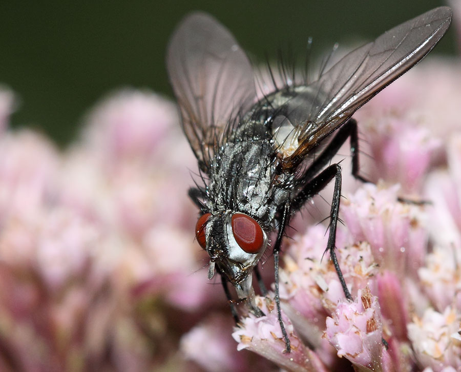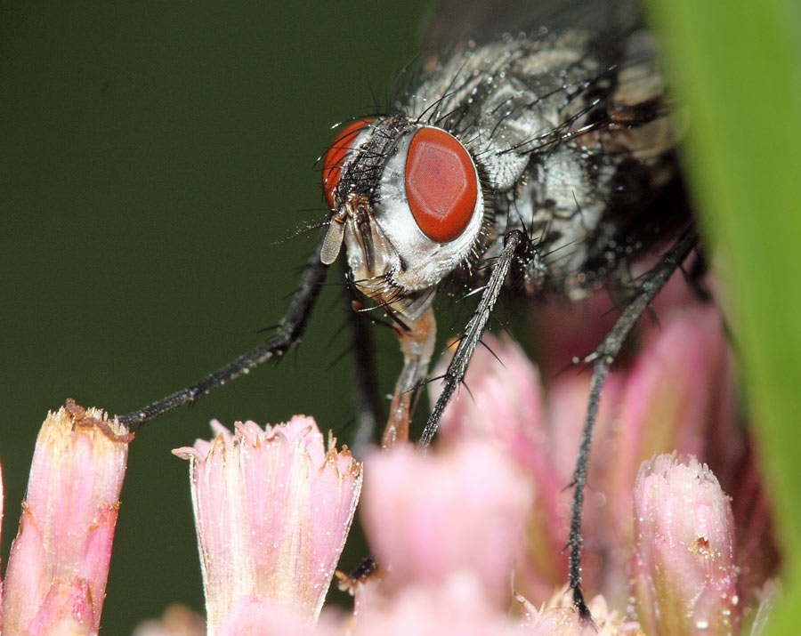 and a head view ... i hope it's the same fly ... same place same flower, same time, there were 3 of its ...