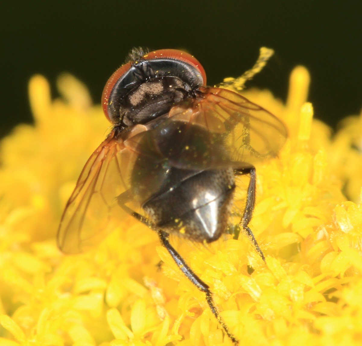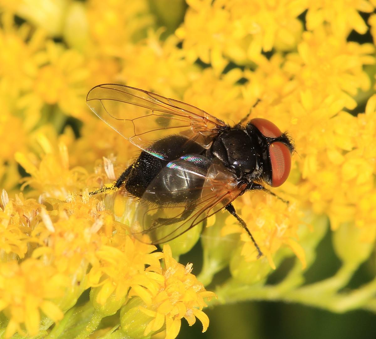 Hi Theo. Thank you very much. It is very strange, I made 41 pics over 14 minutes and to my knowledge, it is the same fly on all. When looking from above, it was black with no markings visible, looking from behind, I could se the crown on thorax, and the black abdomen turned like pic3. It demonstrate one of the problems in just taking pictures and not catching the fly. Thanks again! Ruth Ahlburg Denmark |