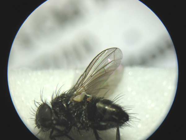 It looks identical to a specimen I took this year, and from what I can make out of the finer detail, corresponds with the key. However, I only started with Calypterates this year...so I would wait for a more experienced opinion. |