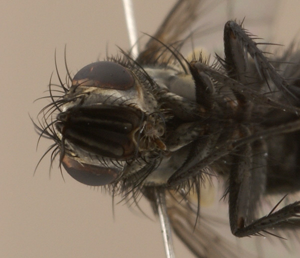 UK, Suffolk, 1st April 2010, size 8mm approx Using Belshaw, this keys out as Brachicheta strigata ? - vertex 2x eye width, middle tibia with 2 or more long antero-dorsal bristles, back of head with some dark hairs, parafacial area without hairs, facial ridge with line of bristles, femora dark brown, abdomen with light grey markings, parafacial area without bristles, medial vein angled, no petiole, no line of hairs on R4+5 or R1, eyes only microscopically hairy, arista bare. I could be way of the mark with this though ![]() Steve sd attached the following image: ![]() [86.29Kb] Edited by sd on 21-03-2011 19:57 |