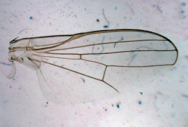 Hello I found small larvae of Diptera preying on eggs of mealybugs (Hemiptera: Pseudococcidae) last June and July 2010 in Valencia, Spain. I got one of them to evolve to adult. Sorry, I have only parts of the insect. I include six pintures. Pic 4 is the hind leg and pic 5 the medium leg. Any clue about its identity will be welcomed. Thanks ferran attached the following image: ![]() [40.89Kb] Edited by ferran on 20-12-2010 14:13 |