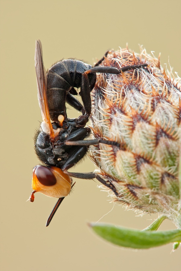 well, besides the features that Mark pointed out, the yellow head and the very strong wrinkles had deviated me from Myopa occulta.. but I was not sure what it could be. Now this is the first time I see a Melanosoma! One strong candidate to go for the gallery! ![]() May it will be possible to collect this one?