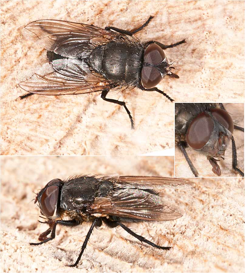 Pollenia again - you can just see the golden hairs remaining near the scutellum and around the side of the thorax