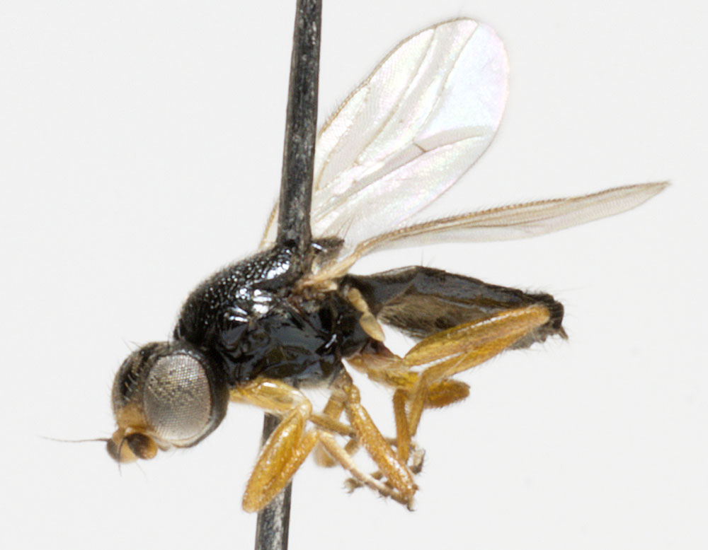 Hi, help needed with the family. Costa is reaching M1+2, face in profile with rounded vibrissal corner, arista not flattened and black, thorax not flattened, ocellar triangle lustrous, hairs on mesonotum not in regular rows. September 8.-9.2010 Helsinki, Finland. Jari JariF attached the following image: ![]() [97.91Kb] |