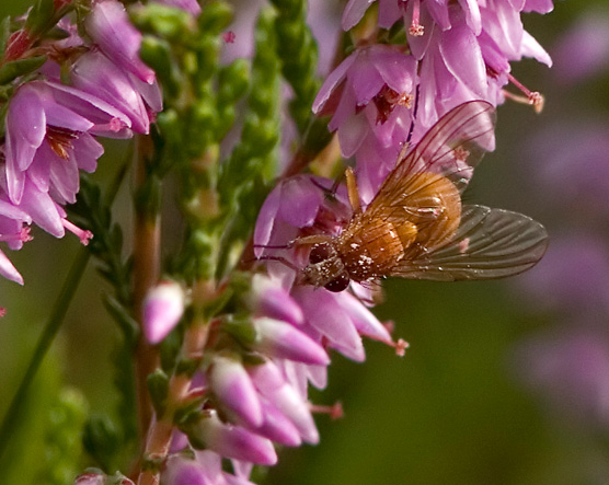 I'm not into Diptera and need help when I get a shot with my camera. This small orange fly is foraging on Heather (Calluna vulgaris). Photographed in southernmost Norway in August. Leif G attached the following image: ![]() [94.35Kb] |