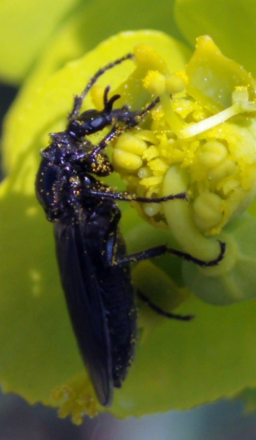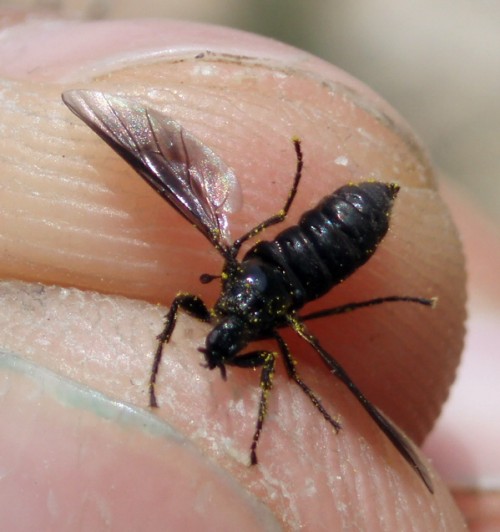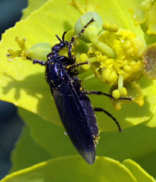 Photographed today at Monegros steppe zone in NE Spain, in flowers of Euphorbia serrata. Bigger than usual Dilophus of my garden, about 6-7 mm lenght. Black wings with transparent tip Can be identified? Thanks! Isidro attached the following image: ![]() [57.06Kb] Edited by Isidro on 17-04-2011 09:06 |