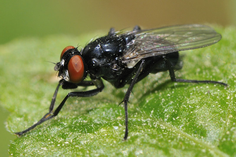 Hi, this is a female Hydrotaea diabolus, Muscidae. The male is more peculiar by having very long upcurved bristles at apex on mid femora. Stephane. |