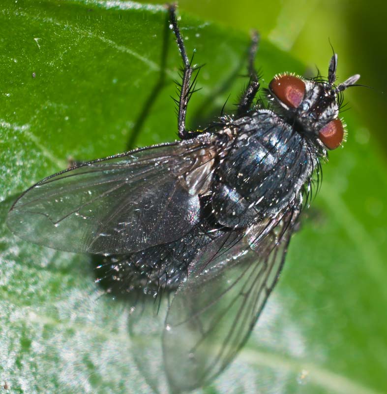 Can't see the facial ridge bristles but it is bluish and has pale tibiae and hairy eyes so it's a fair bet