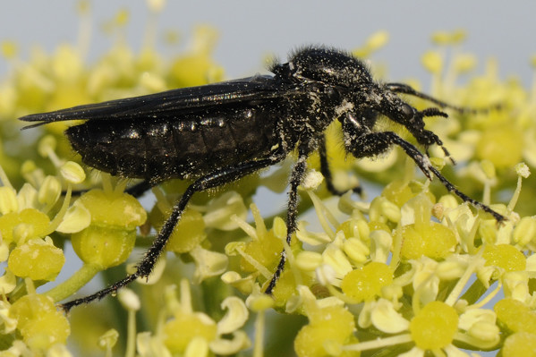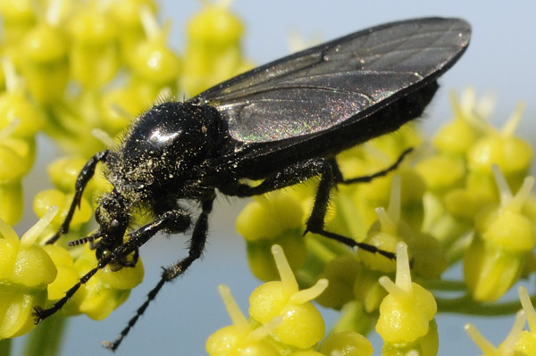 . There are not many that are completely black (including hairs) and have dark wings.