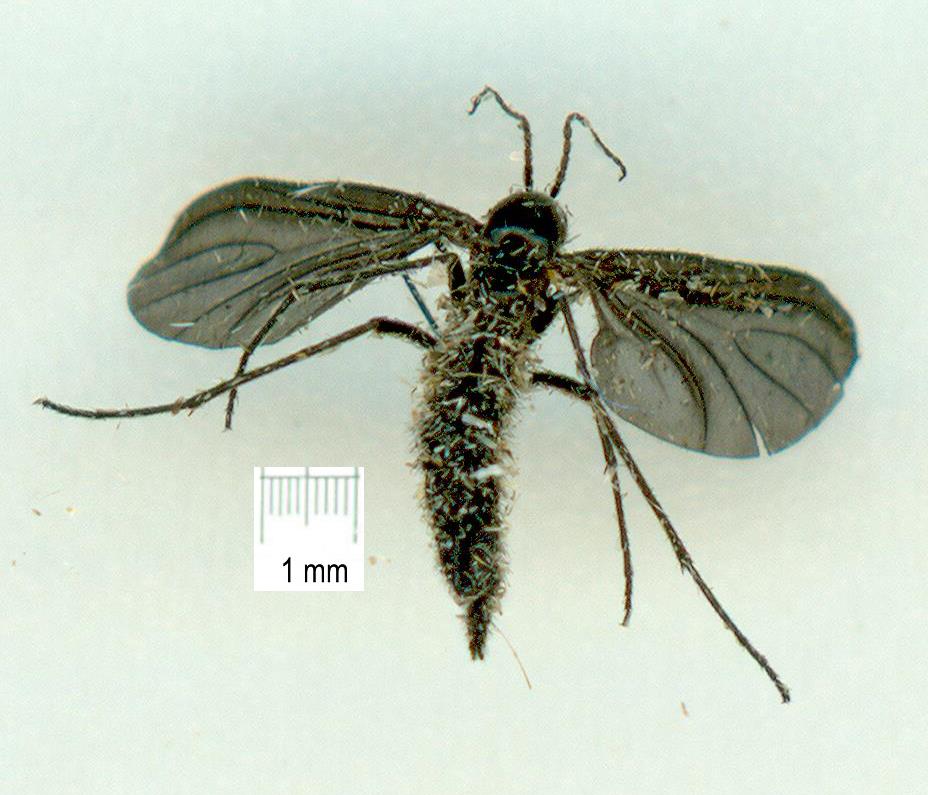 I believe this is Sciaridae, is genera possible? Sorry about the moth scales. Light trap, Townsville, Queensland. Graeme Cocks attached the following image: ![]() [79.79Kb] |