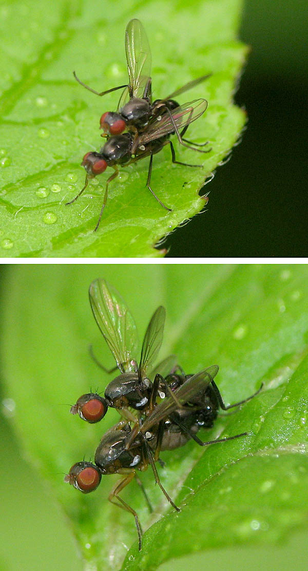 Hi, In June 2009 I saw a lot of mating Sepsids (location: Berlin). As to darkened wing tip and light forelegs I tend to Nemopoda nitidula but would be grateful for confirmation. Thanks, Sundew Sundew attached the following image: ![]() [115.41Kb] |