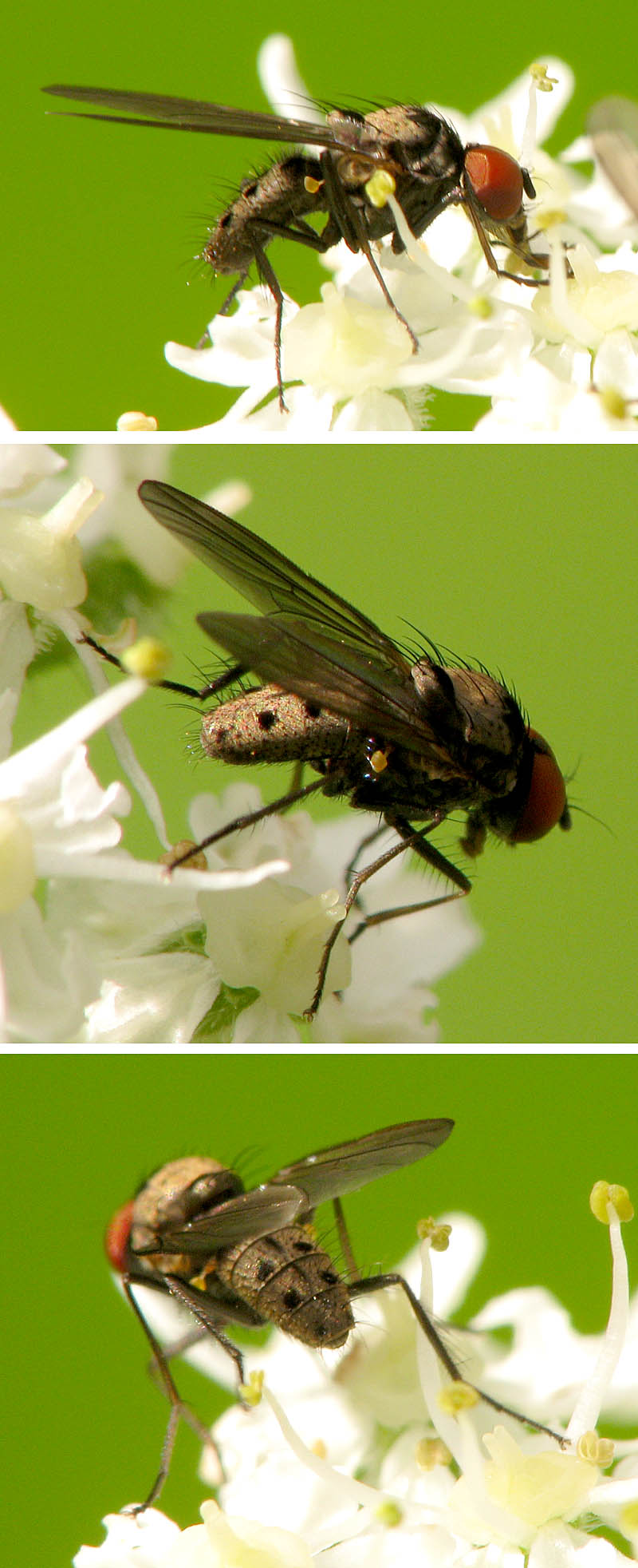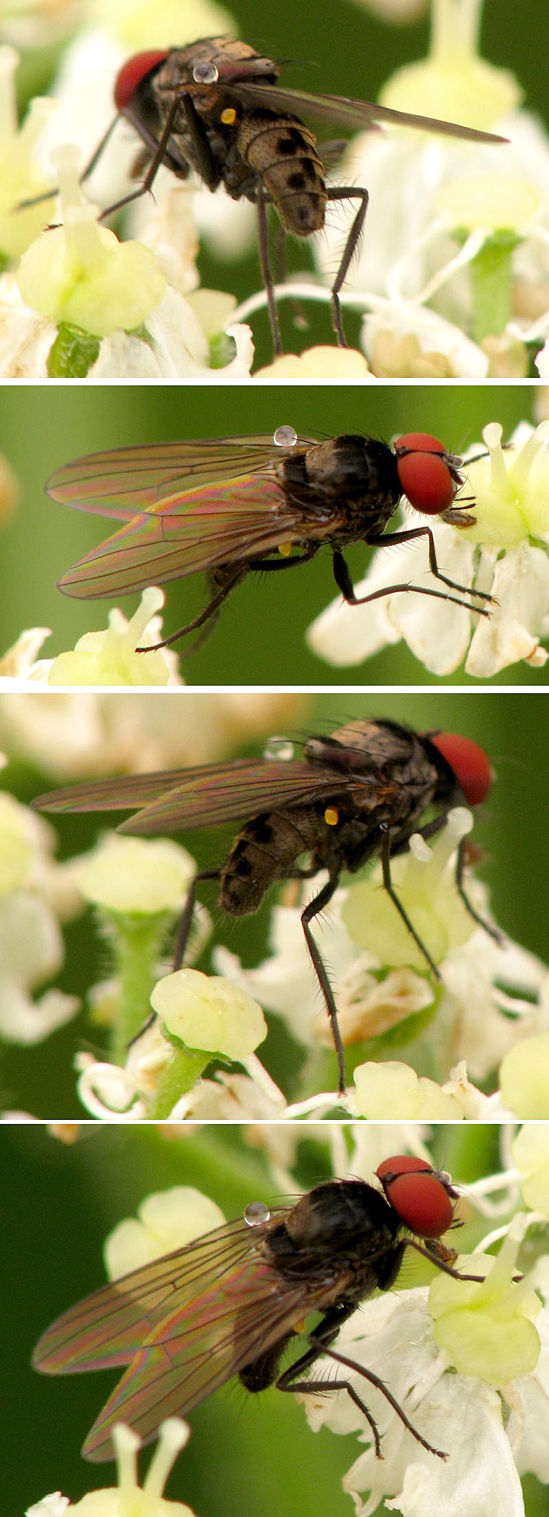 Hi, This small fly I saw in Austria, Tyrol, Niederthai (1.500 m) in last August. The only flies with such dotted abdomen I know belong to the Muscidae; however, the eyes of this male are strange. Anthomyiidae might be another option... Help, please! Many thanks, Sundew Sundew attached the following image: ![]() [163.21Kb] Edited by Sundew on 11-06-2011 18:24 |