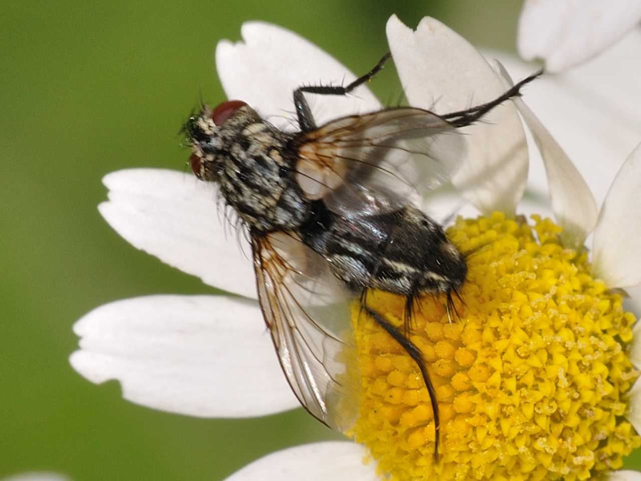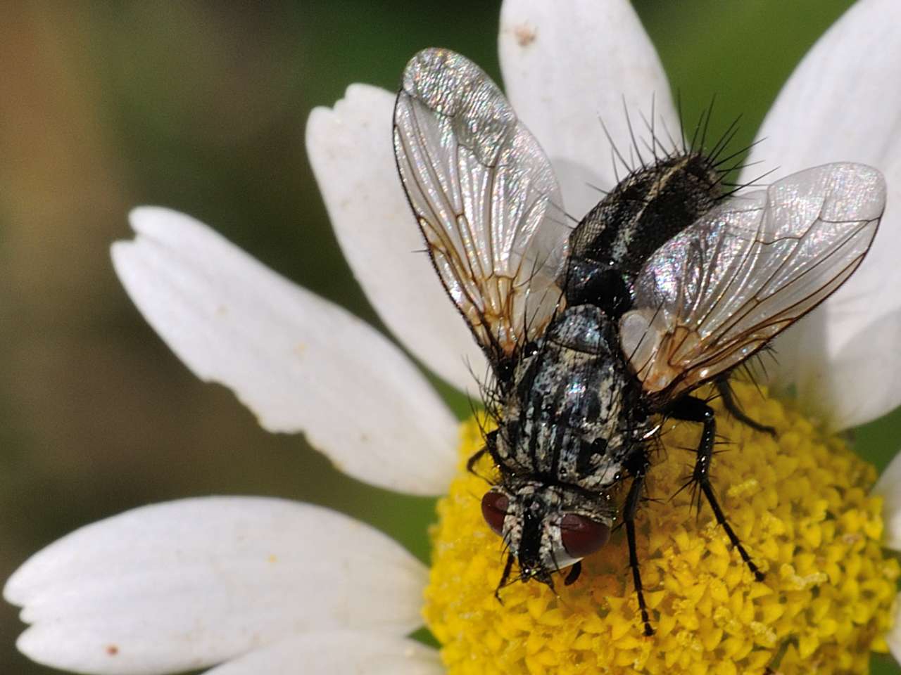 Looks very interesting - a tachinid, not sarcophagid (see the petiolate median vein) Estheria sp. perhaps? Do you have more angles?