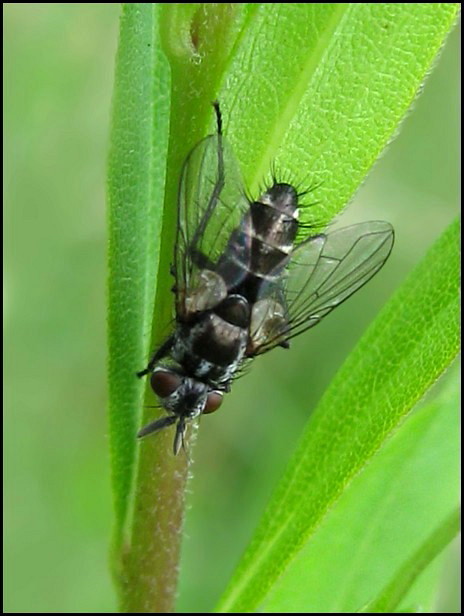 Hi Hedy That sure looks like a Tachinid, an Admontia blanda male to be more specific. Host is larvae of Tipulidae, rather unusual in Tachinidae. Theo |