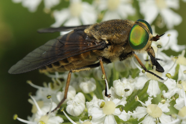 Can anyone confirm my tentative ID of this BIG green-eyed horse fly as P. aprica, or are there other possibilities? 16.7.11 c 15mm c 1400m near Lake Bohinj, Slovenia feeding on Hogweed flowers. I'm guessing this is a purely nectar feeding species? Never got bitten by them. Just as well... nick upton attached the following image: ![]() [128.88Kb] Nick Upton - naturalist and photographer |